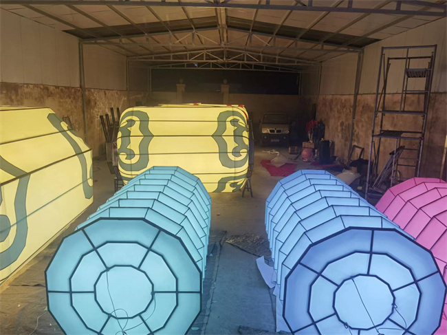 $'  該項目位于福源巷子(zǐ)"§₩→街(jiē)區(qū)廣場(chǎng),燈籠高(gāo∞ ×↑)度3.8m,用(yòng)方管,圓管,鐵(tiě)藝骨架焊接而成表面采用(yòng)♣↑₹ PVC仿羊皮面料,懸挂于廣場(chǎng)ε¶€©上(shàng),宏偉壯觀。